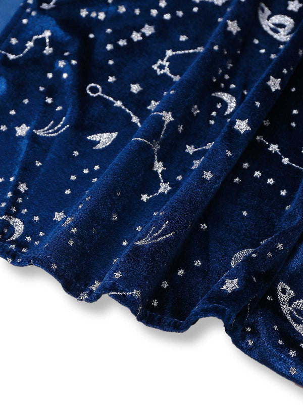 Blau 1970er Halloween Magician Cosplay Schlitz Kleid Mit Hut