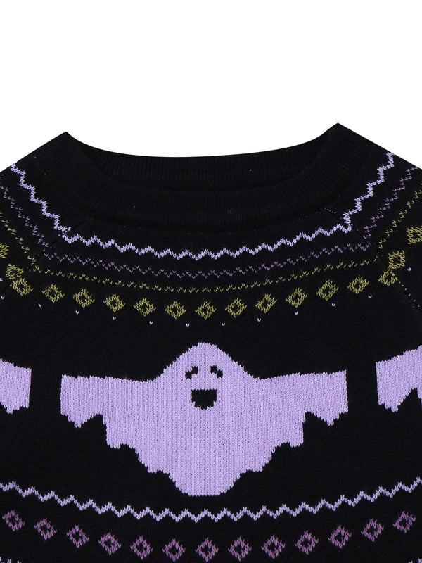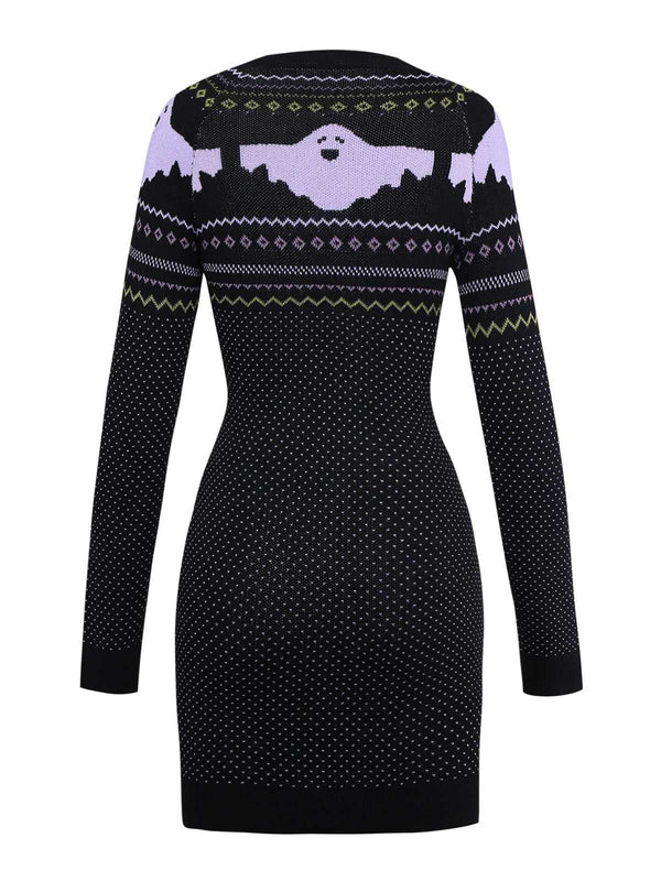 Schwarz 1960er Halloween Dots Geist Pullover Kleid