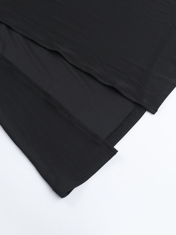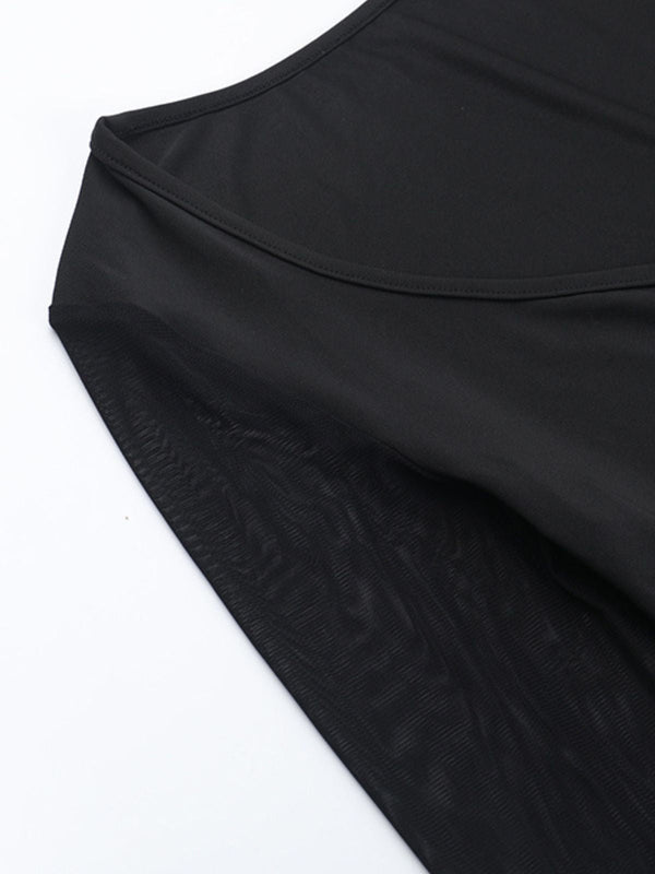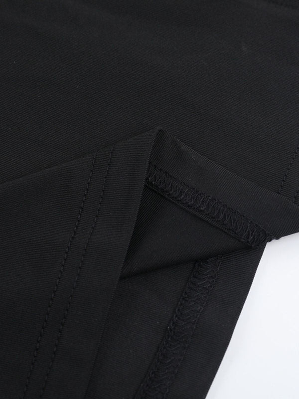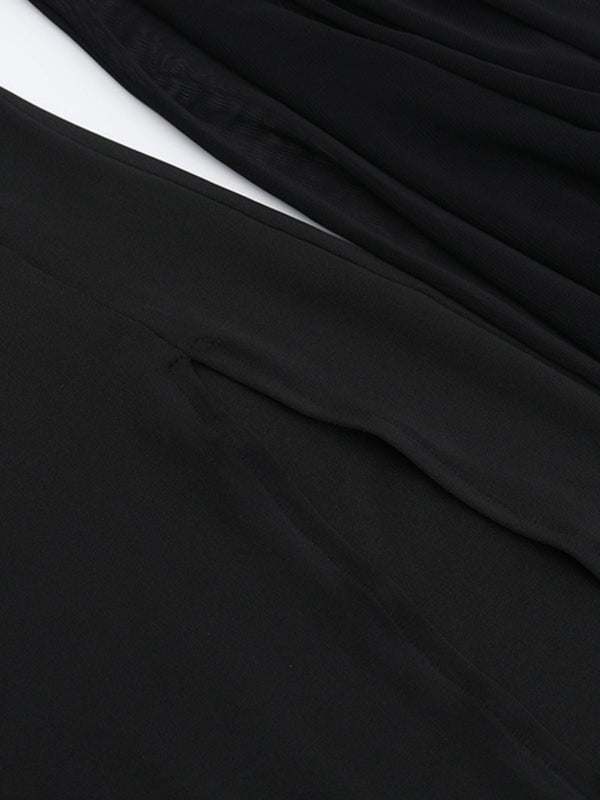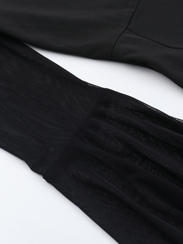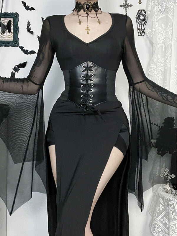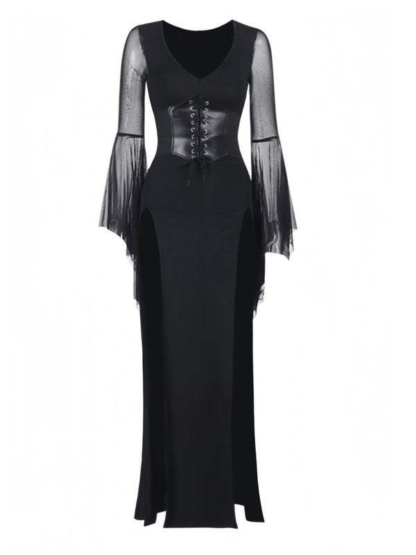 Schwarz 1980er Gothic Durchsichtig Ärmel Korsett Schlitz Kleid