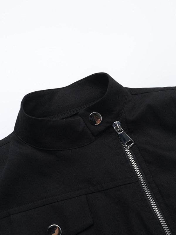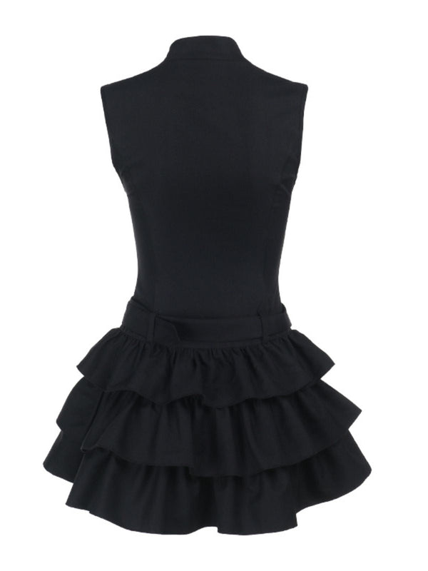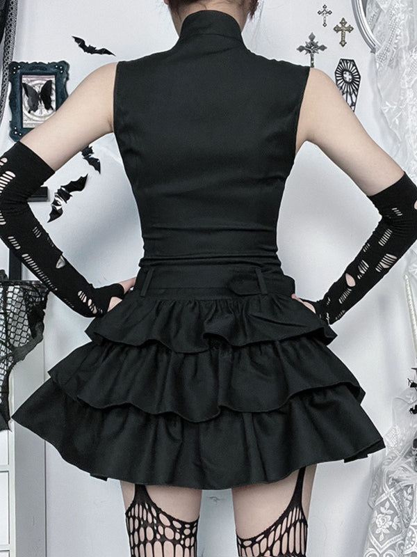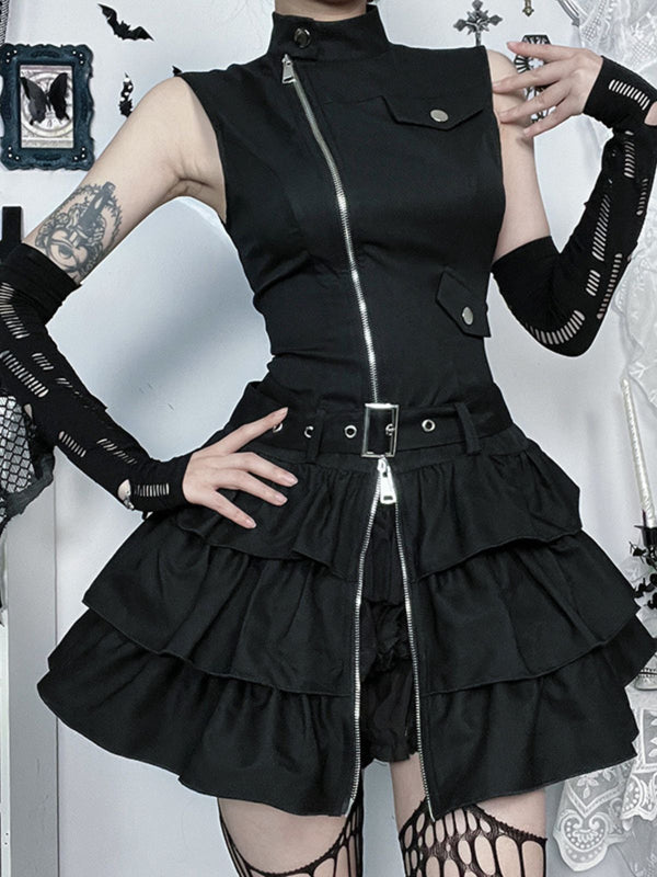 Schwarz 1980er Steampunk Solide Reißverschluss Gürtel Kleid
