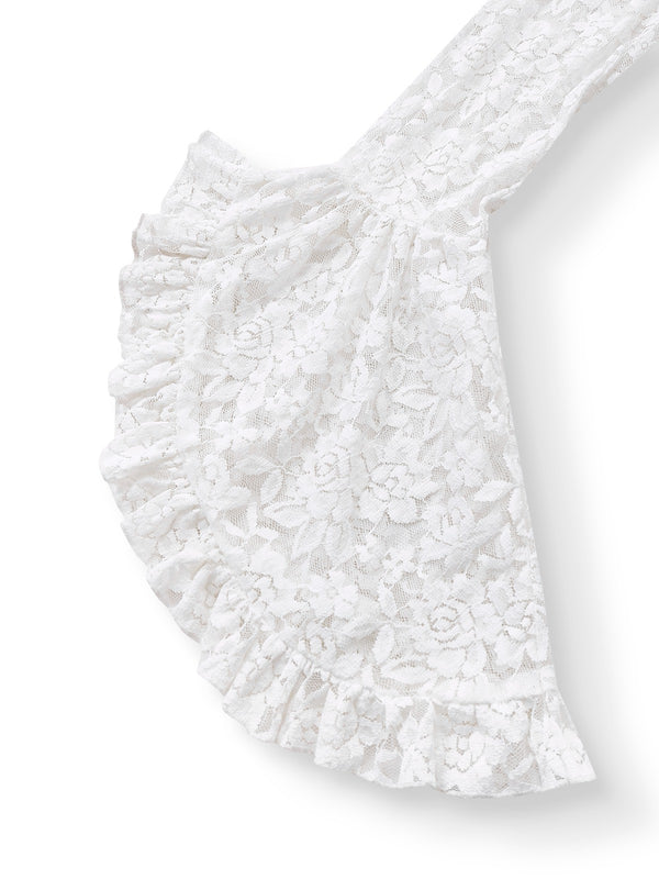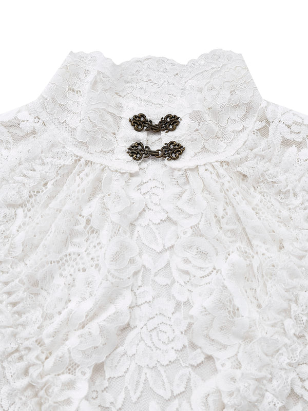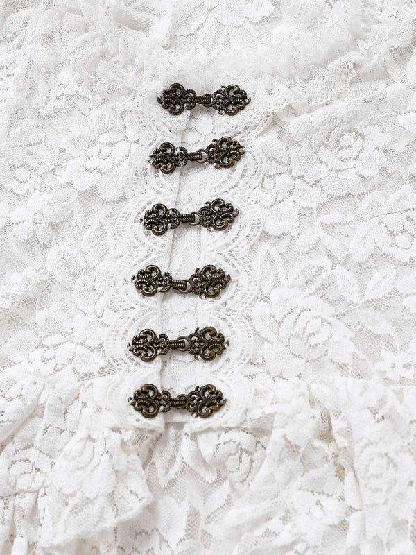 Weiß 1980er Gigot-Ärmel Viktorianisch Spitze Kleid