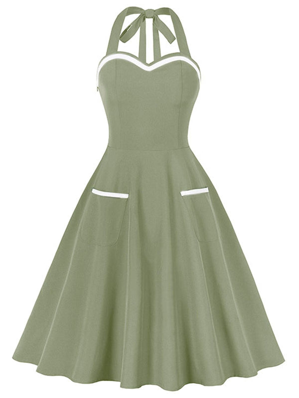 1950er Halter Taschen Rückenfrei Swing Kleid