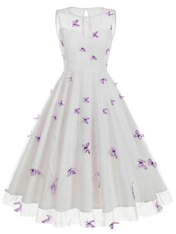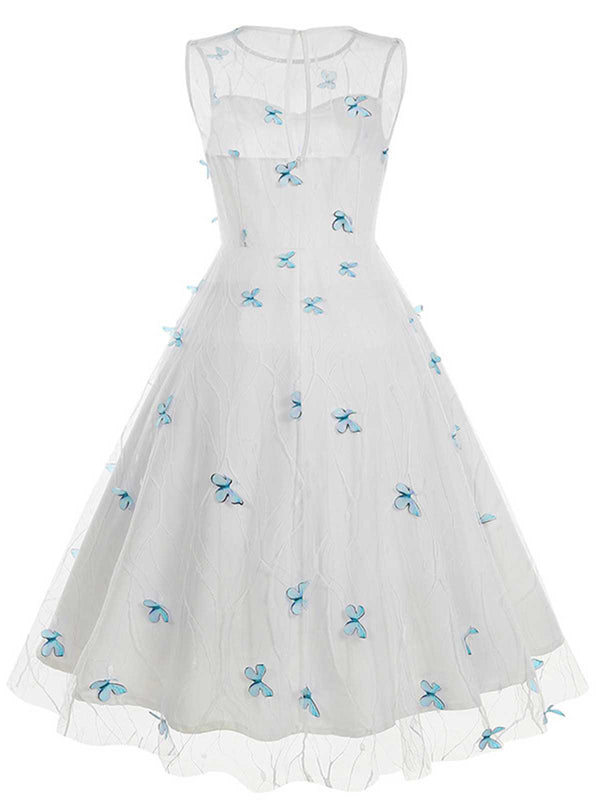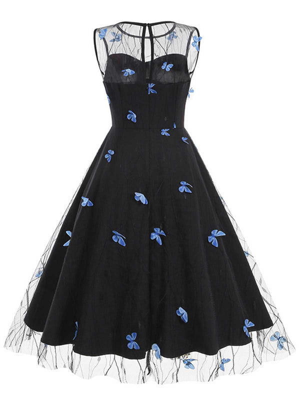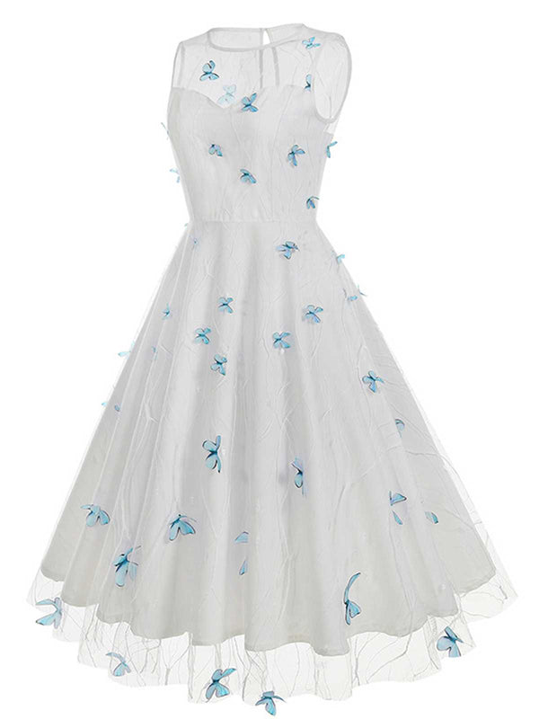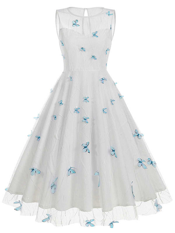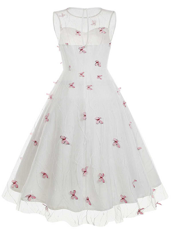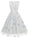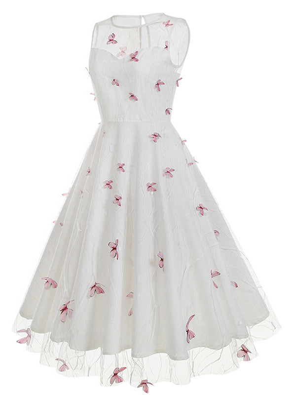 1950er Rundhals Stickerei Schmetterling Masche Kleid