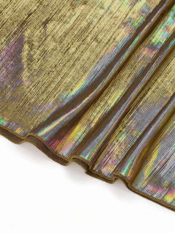 Gold 1930er Metallisch Texturiert Bogen Wasserfallkragen Kleid