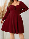 [Übergröße] Weinrot 1940er Solide Flanell Langarm Kleid