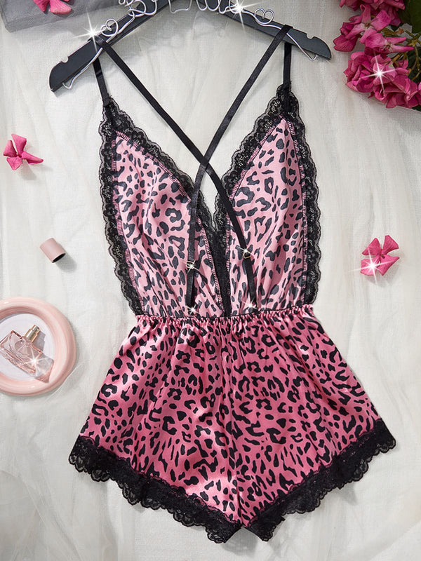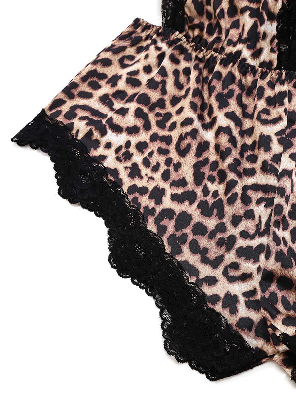 1950er Spaghetti Träger Leopard Spitze Nachtwäsche