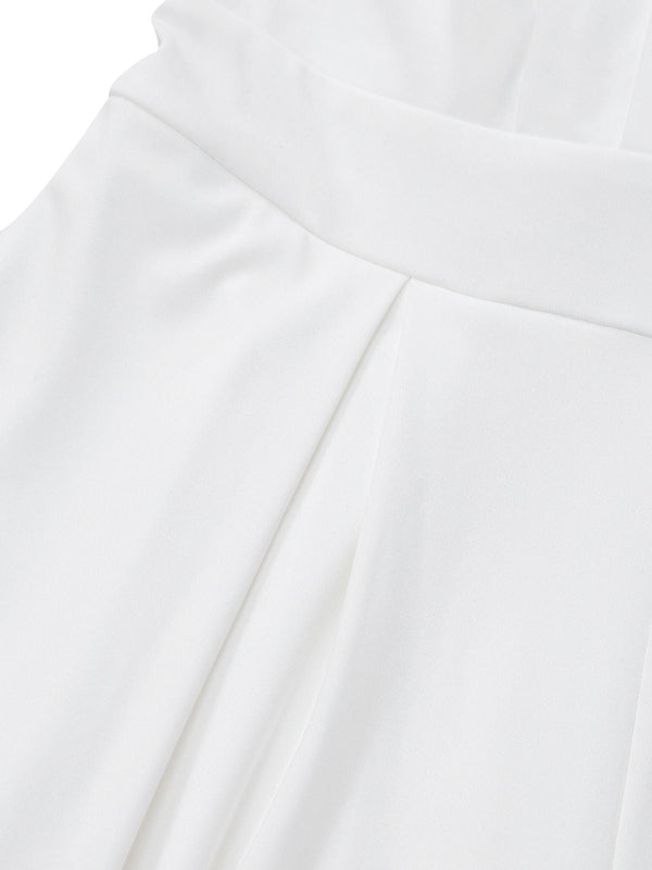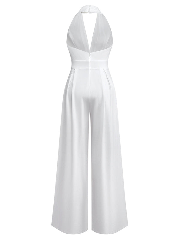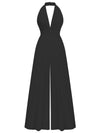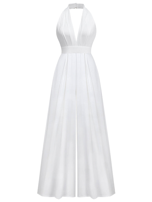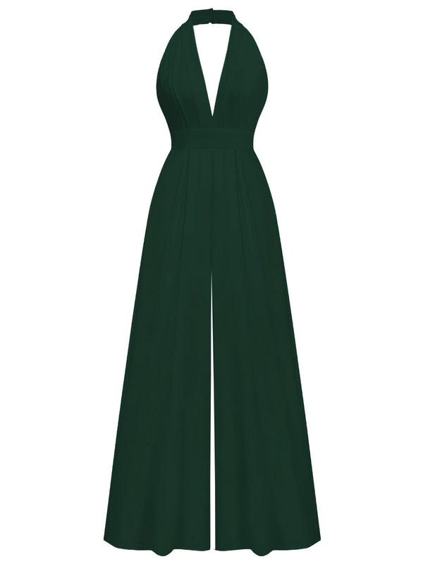 1970er Tief-V-Ausschnitt Solide Super Weitbein Jumpsuit