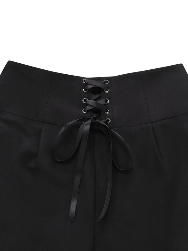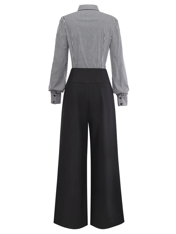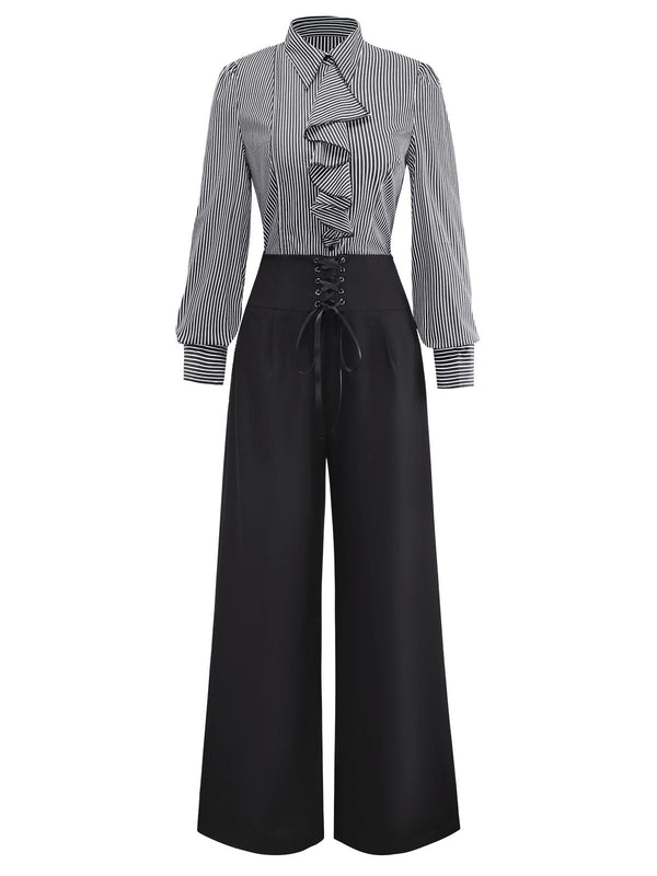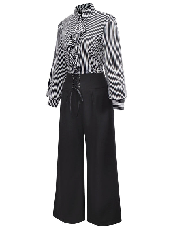 [Vorverkauf] 2PCS 1940er Rüschen Streifen Bluse & Schnürung Hose