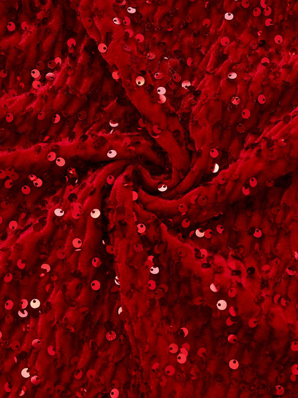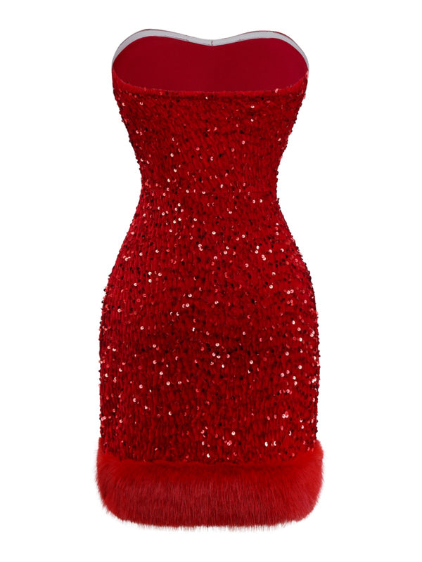 2PCS Rot 1970er Samt Pailletten Kleid & Kunstpelz Schal