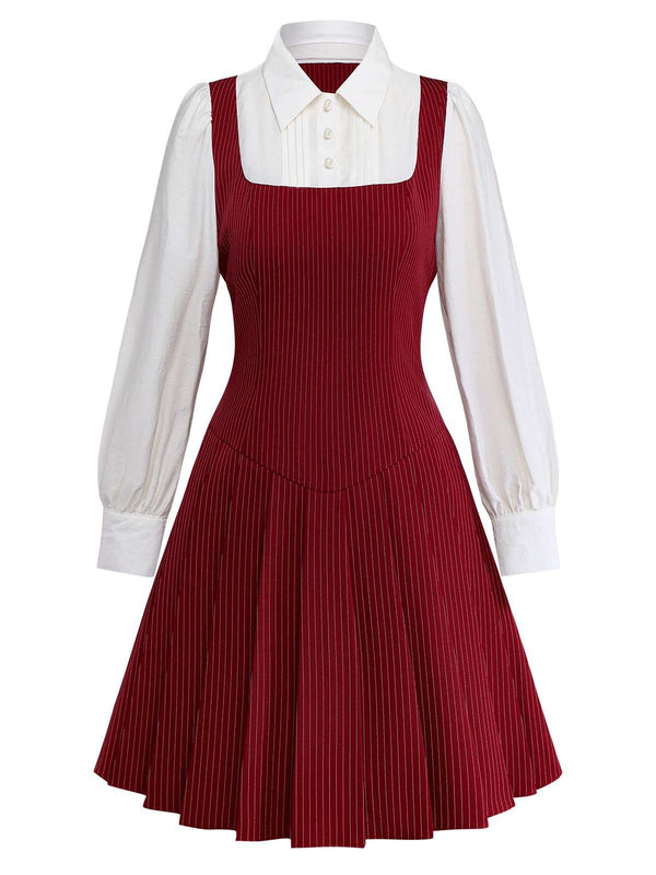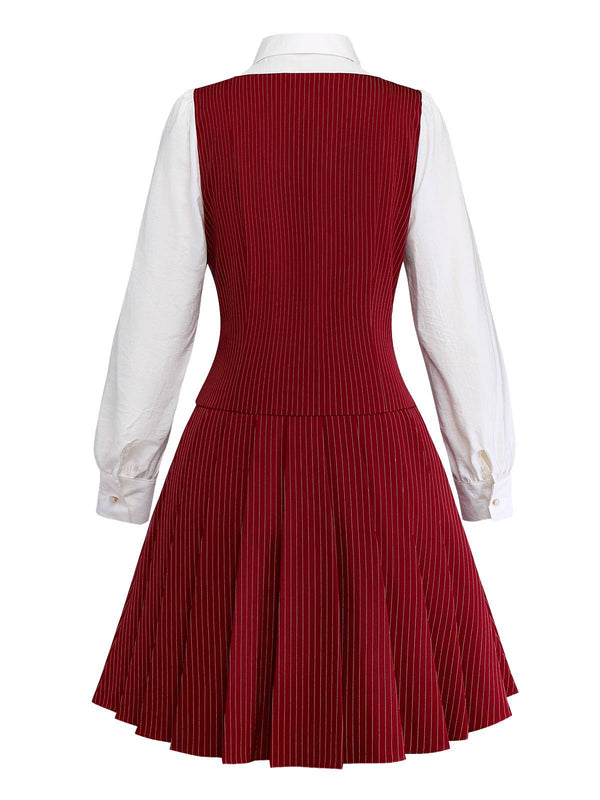 [Vorverkauf] Rot 1960er MOD Vertikal Streifen Plissiertes Kleid