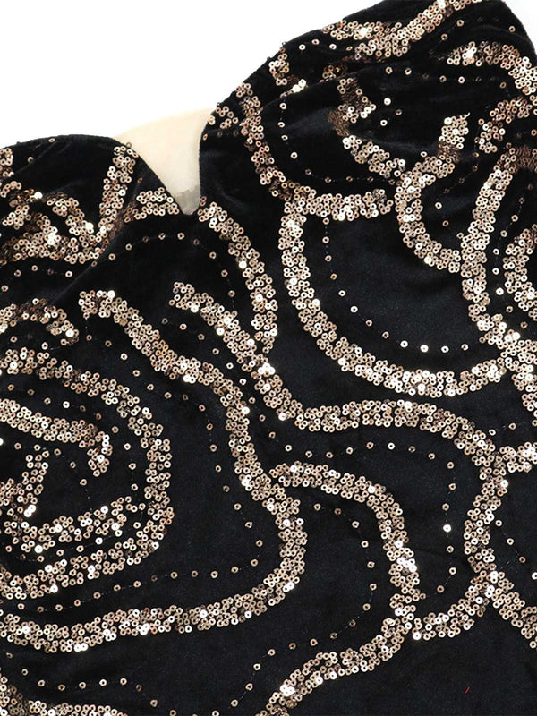 Schwarz 1980er Trägerlos Pailletten Bodycon Kleid
