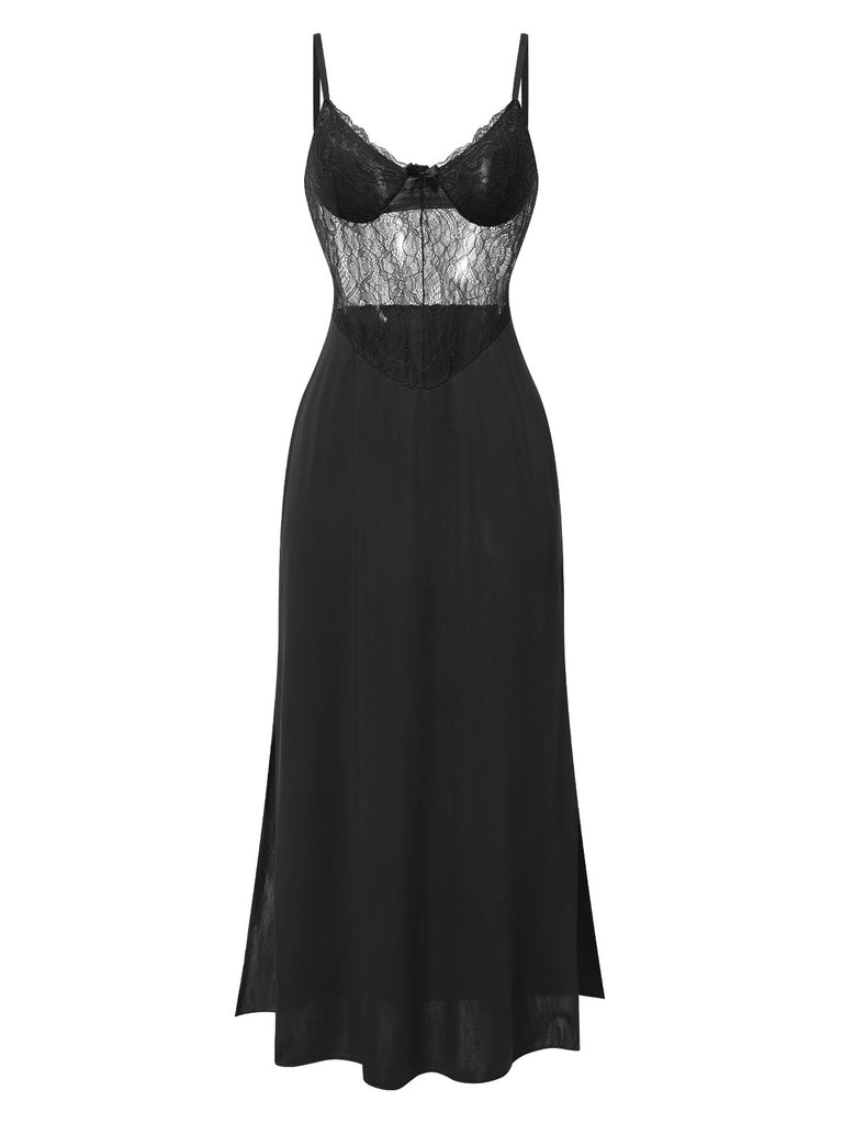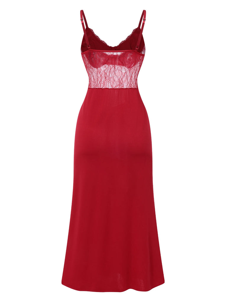 1930er Solide Spaghetti Träger Spitze Chiffon Nachthemd