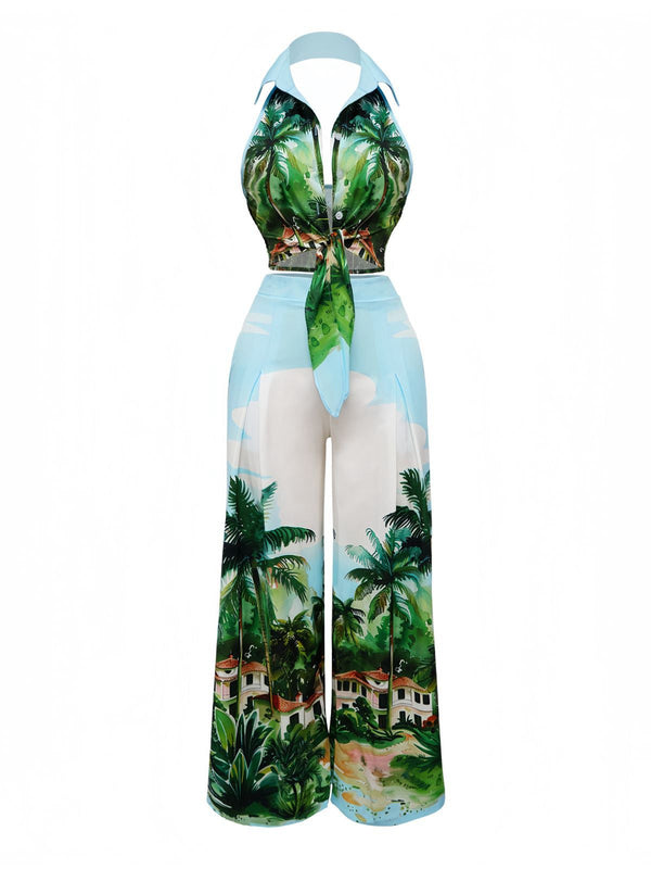 2PCS 1950er Tropisch Stil Halter Top & Hose
