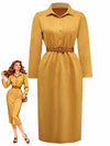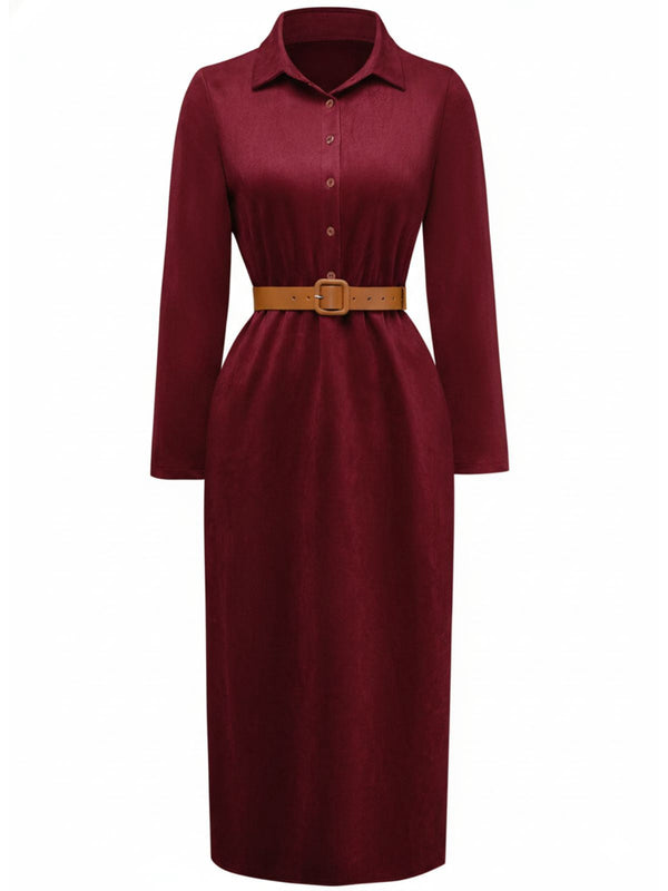 1930er Wildleder Knopf Vorne Gürtel Hemd Kleid