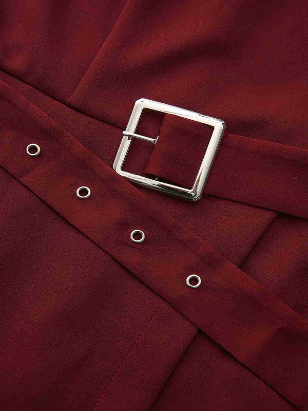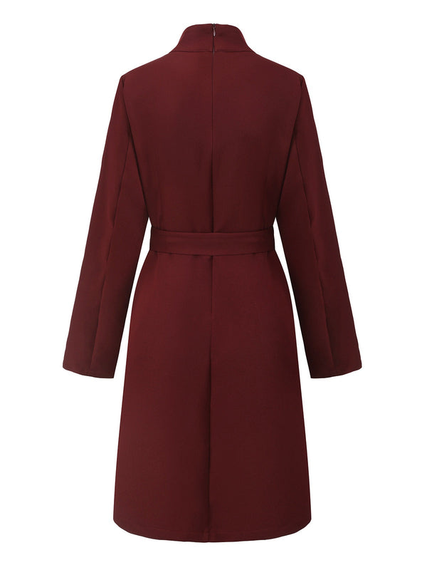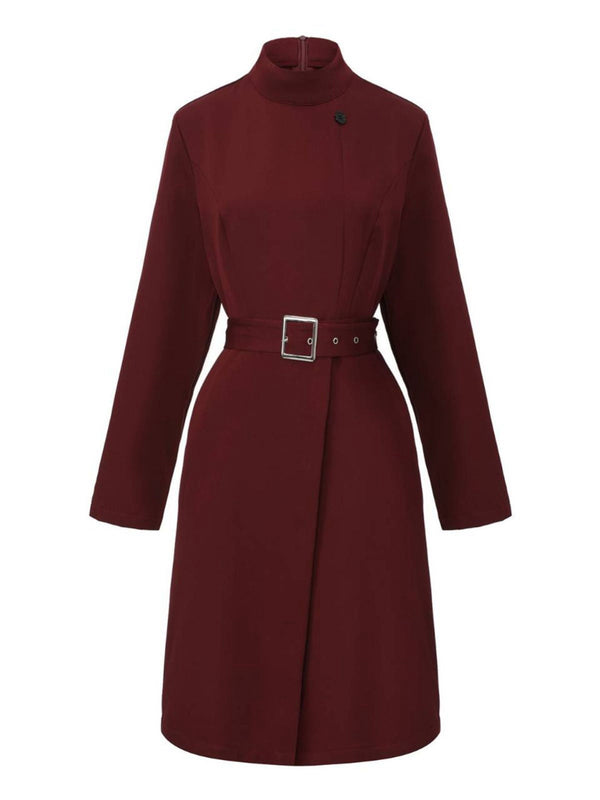 1940er Solide Rollkragen Gürtel Tasche Kleid