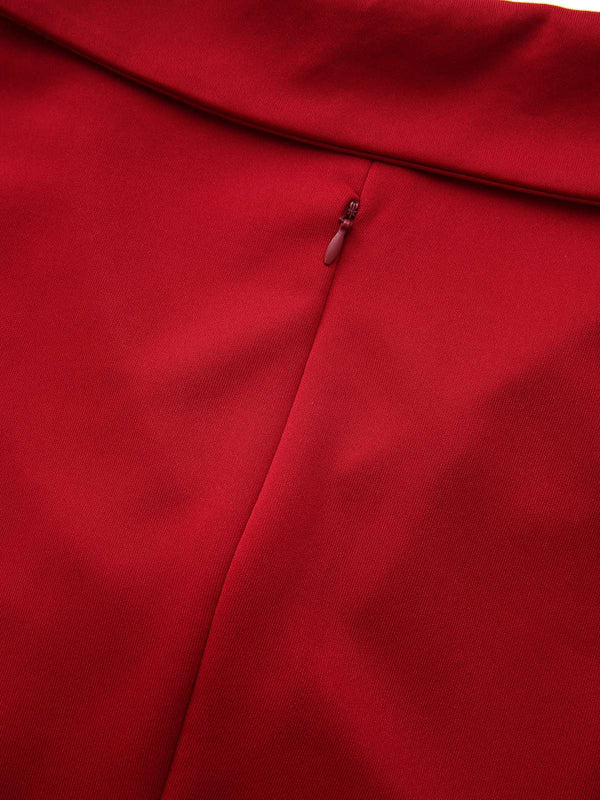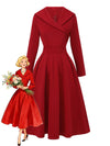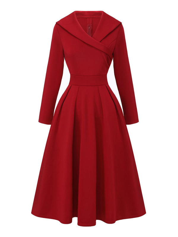 1950er Solide Revers Hoch Taille Swing Kleid