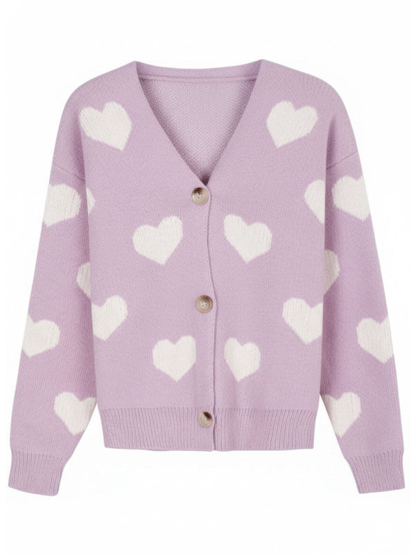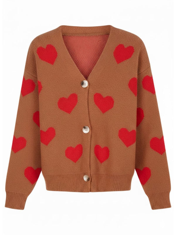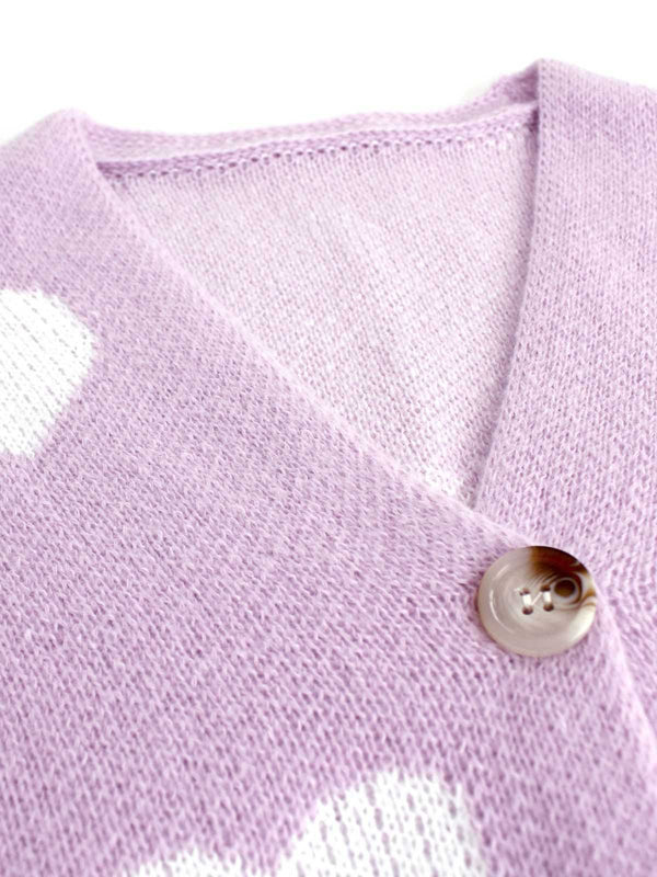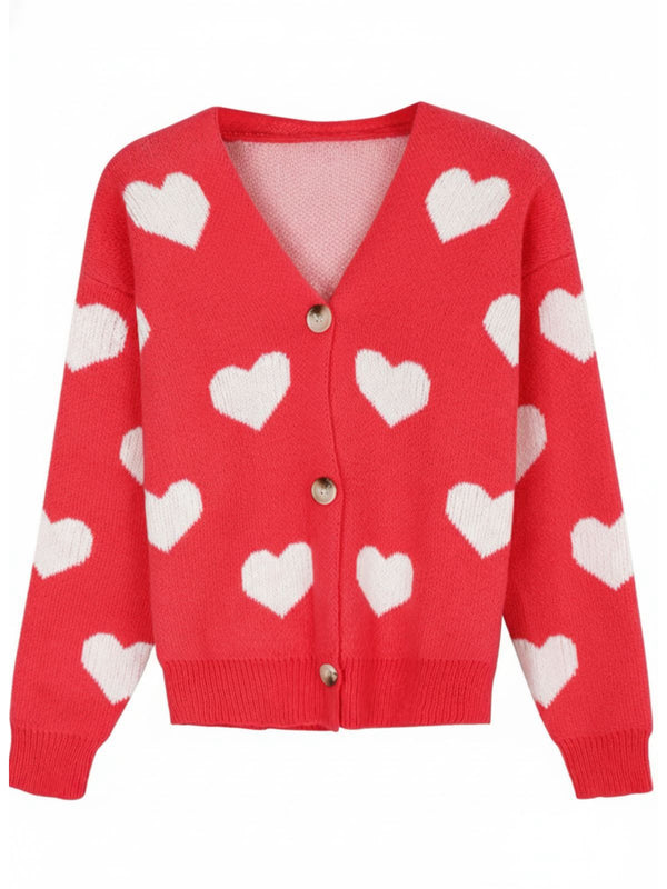 1950er Valentinstag Herz Drucken Stricken Strickjacke