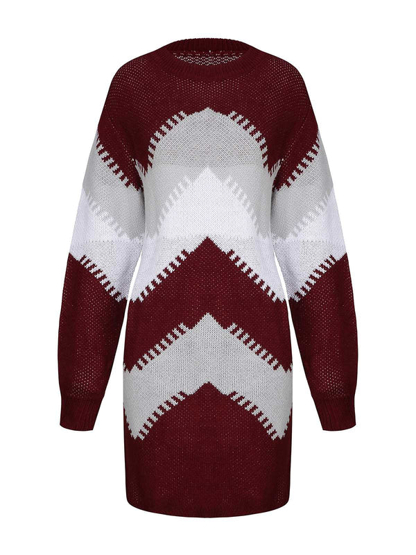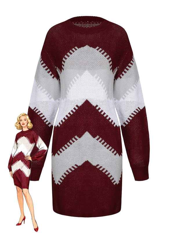1960er Farbblock Stricken Pullover Kleid