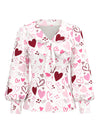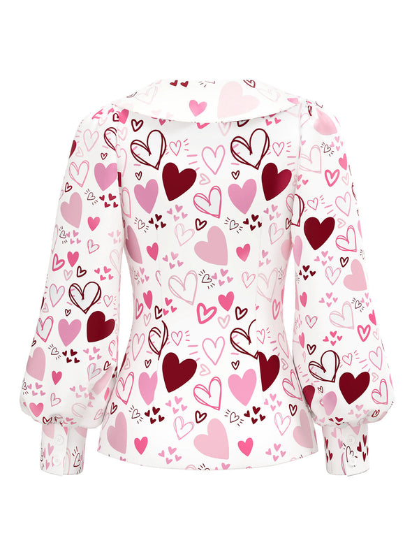 [Vorverkauf] 1960er Valentinstag Herz Drucken Bogen Bindung Hals Bluse