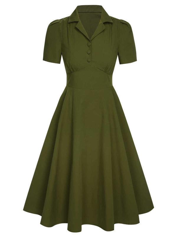 [Vorverkauf] Armeegrün 1940er Revers Geknöpftes Kleid