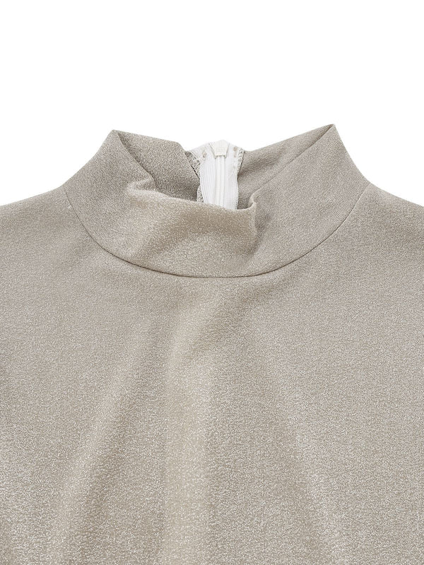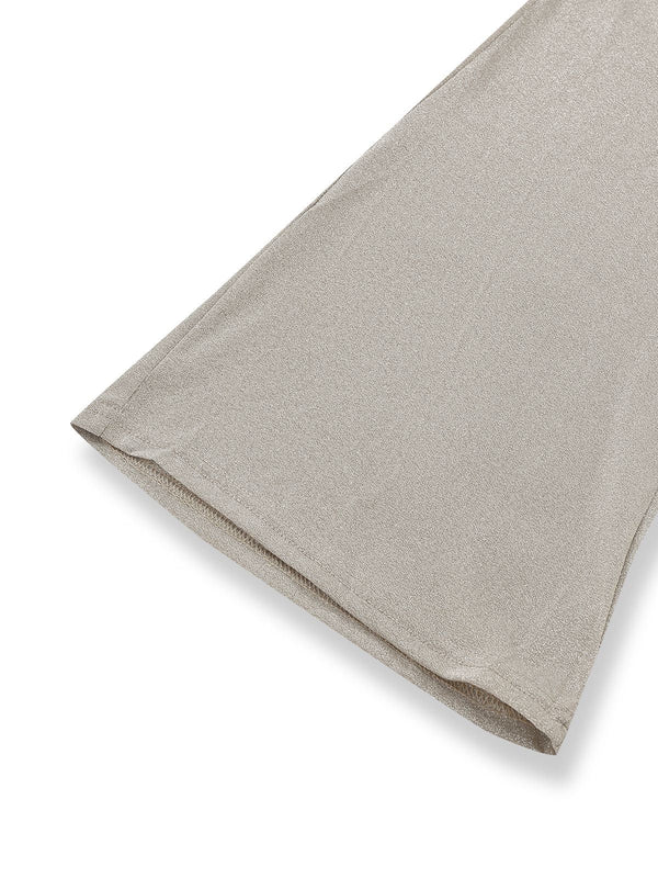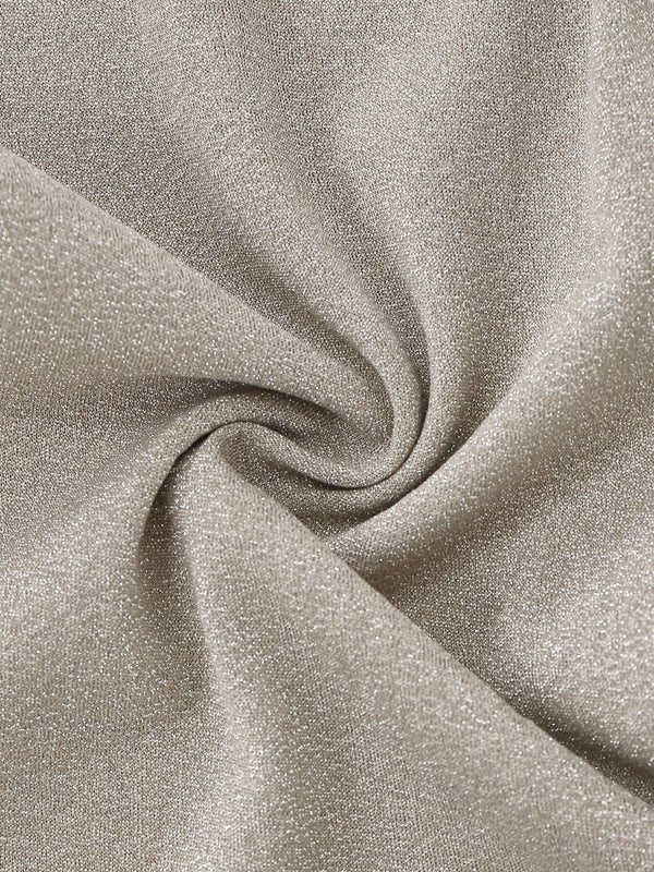Beige 1980er Glitzer Samt Ausgestellt Rollkragen Jumpsuit