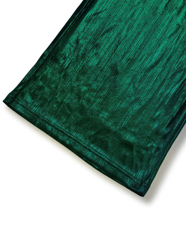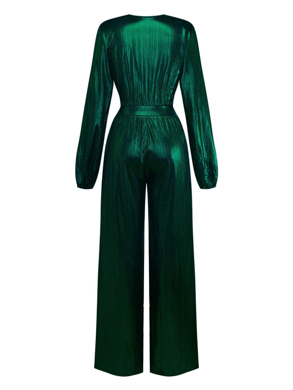 Dunkelgrün 1930er Metallisch V-Ausschnitt Laternenärmel Jumpsuit