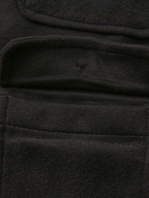Schwarz 1940er Solide Kunstwolle Kurz Jacke