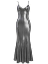 Silber 1930er Spaghetti Träger Meerjungfrau Kleid