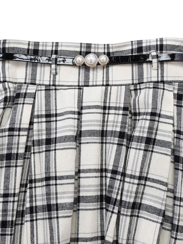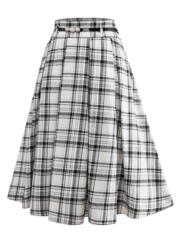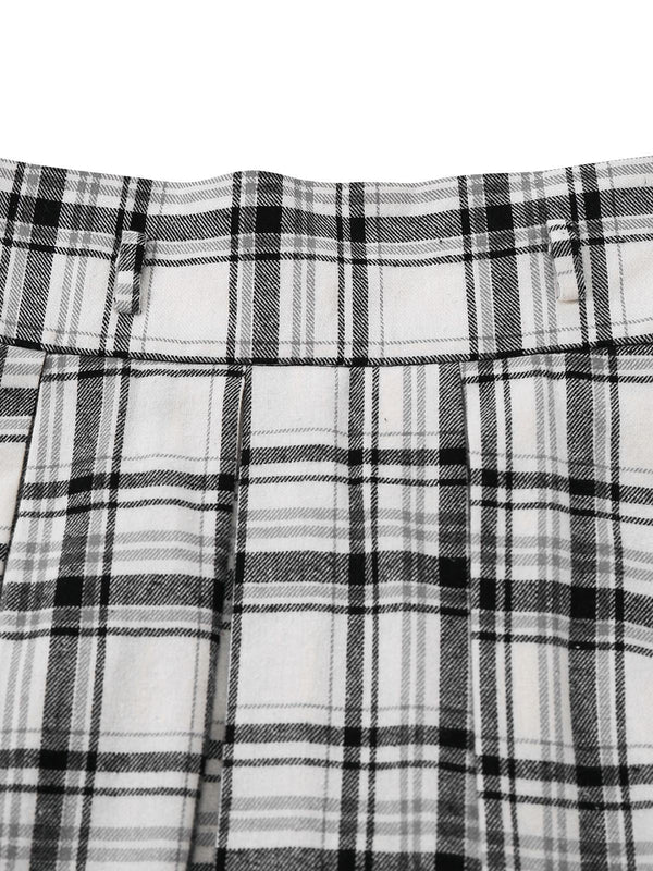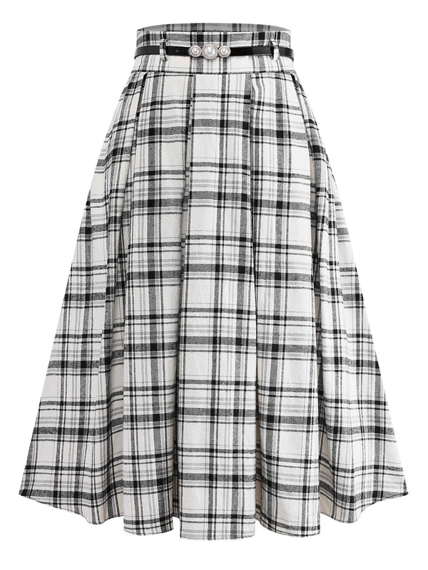 [Vorverkauf] Weiß 1950er Baumwolle Gürtel A-Linie Plissiertes Rock