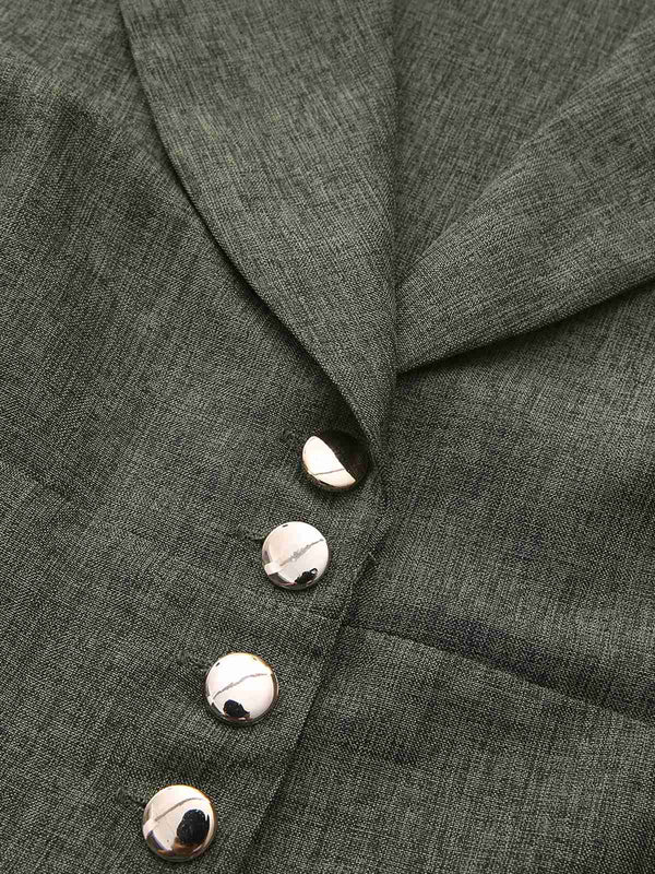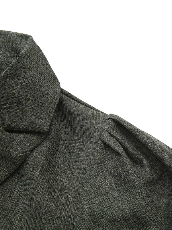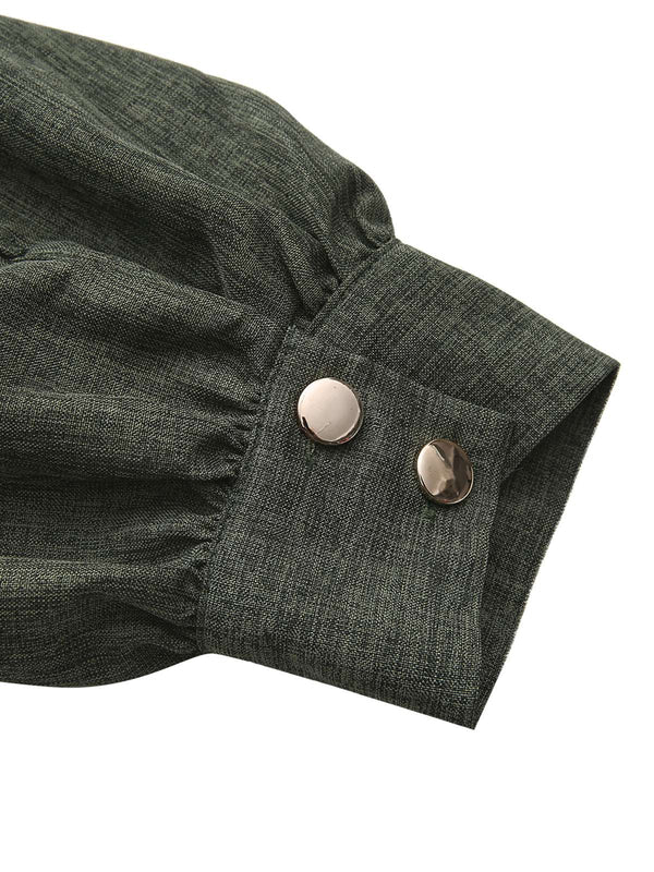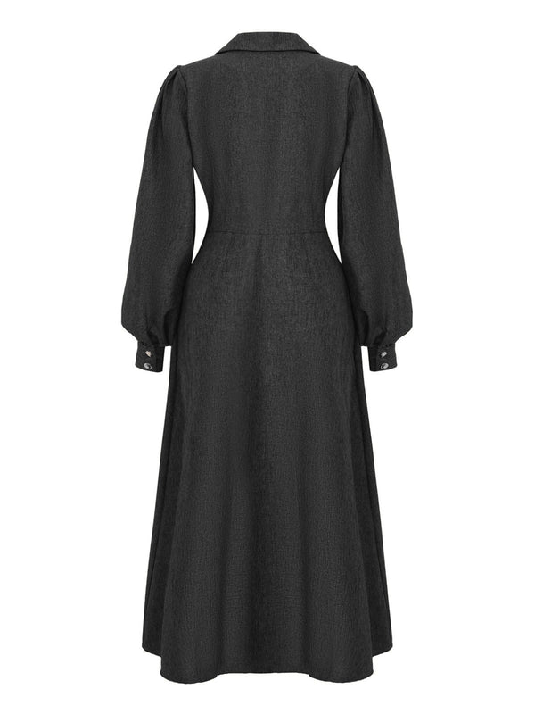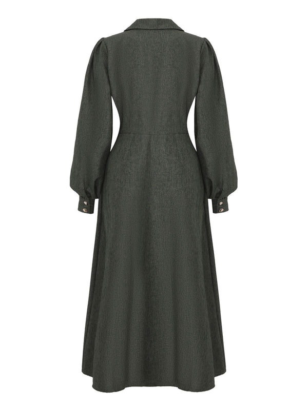 1940er Gekerbt Kragen Laternenärmel Taste Kleid