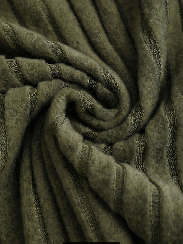Olivgrün 1960er Kariert Akzent Taste Details Gerippt Kleid