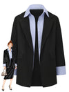 Schwarz 1950er Streifen Revers Kunst Zweiteilig Blazer