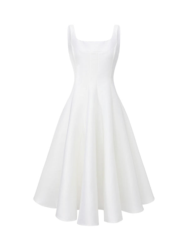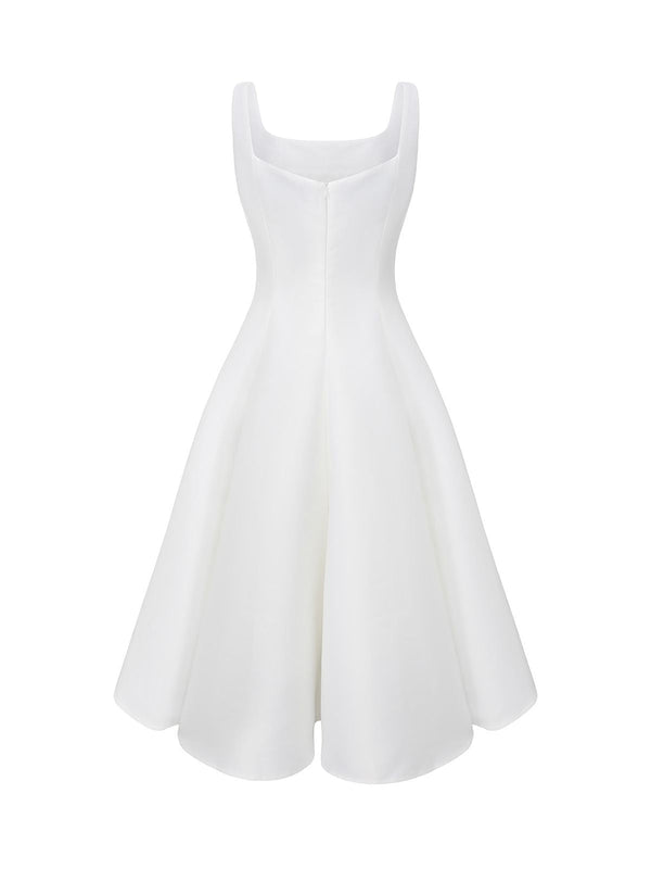 Weiß 1950er Solide Breit Gurt Abend Kleid
