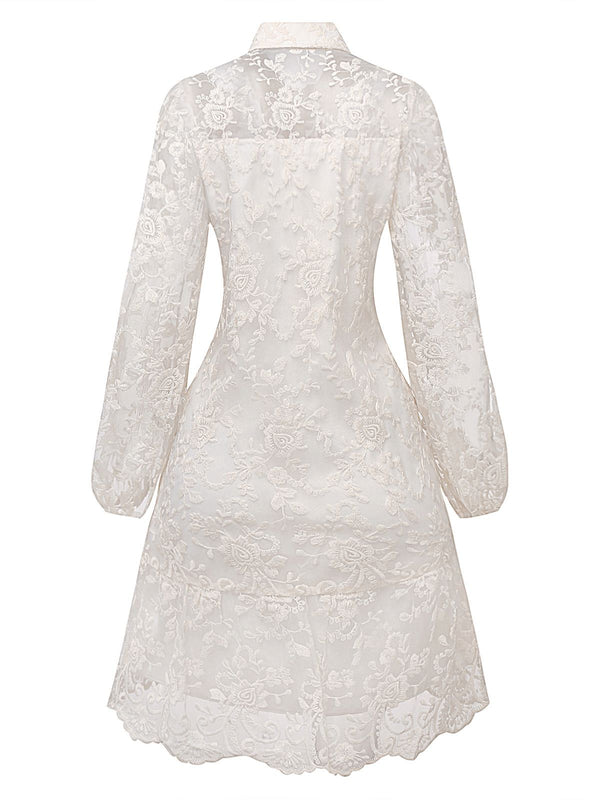 Weiß 1960er Solide Rein Baumwolle Spitze Kleid