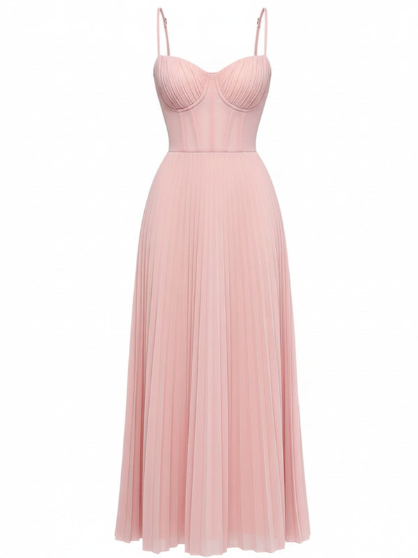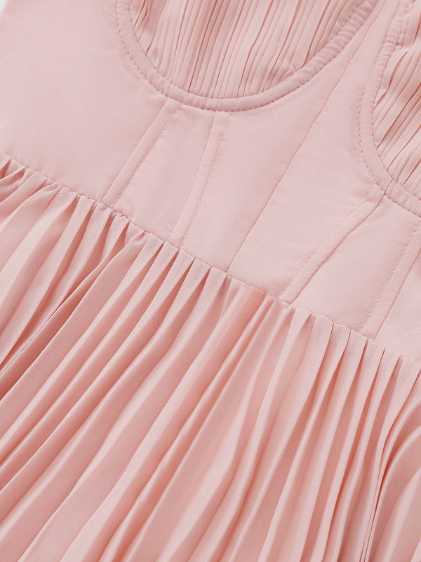 1930er Solide Plissiertes Riemchen Abend Kleid