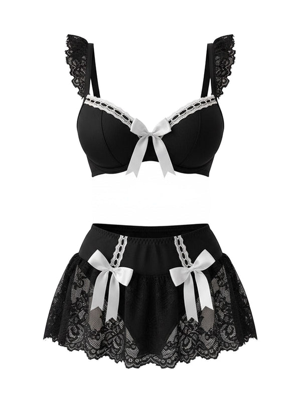 1980er Spitze Bogen Maid Kostüm Loungewear Set