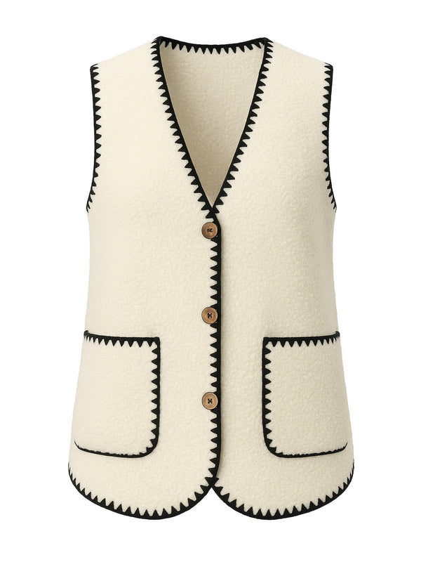 Beige 1950er Kunstwolle Einfassung Tasche Weste