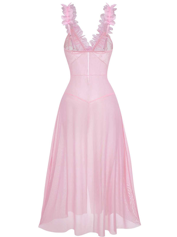 Rosa 1930er 3D Blumen Durchsichtig Netz Spitze Dessous Set