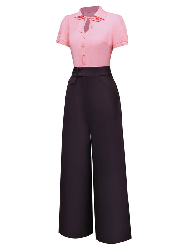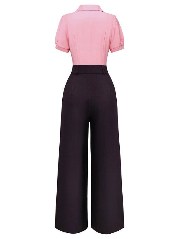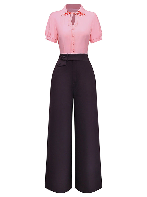 [Vorverkauf] Rosa & Grau 1930er Bogen Kragen Revers Jumpsuit