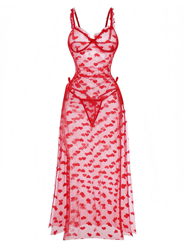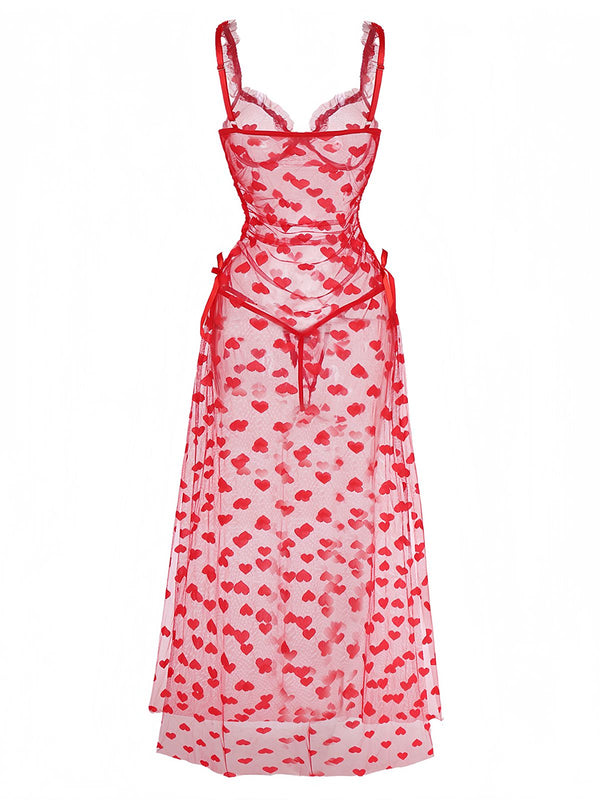 Rot 1930er Herz Netz Gurt Nachthemd