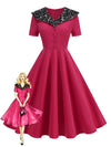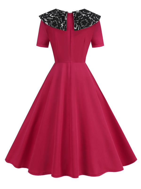 Rot 1950er Spitze Blumen Matrosen Kragen Swing Kleid