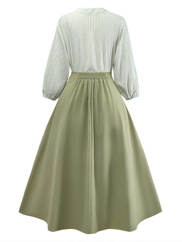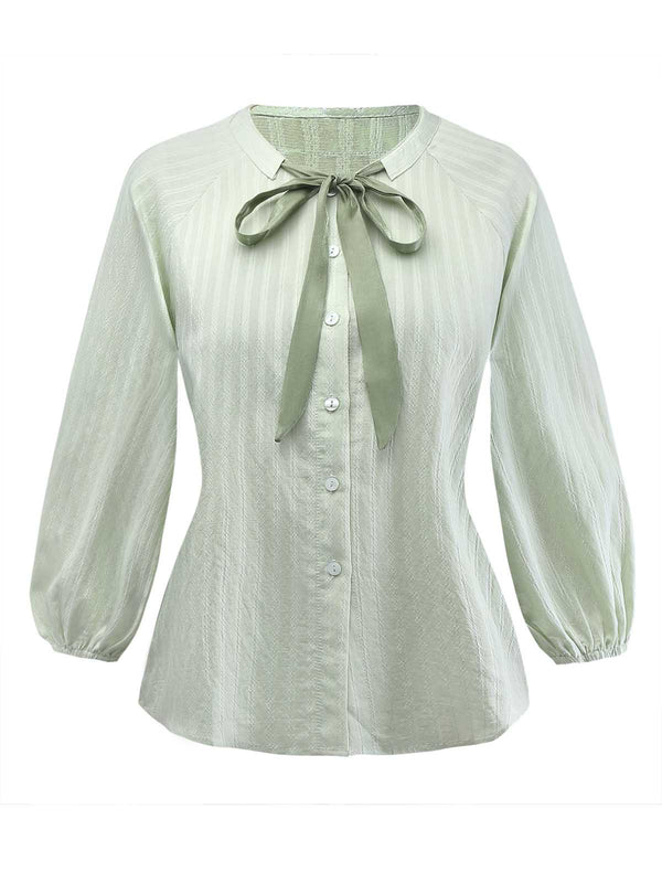 2PCS Grün 1980er Bindehals Bluse & Solide Rock