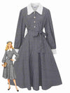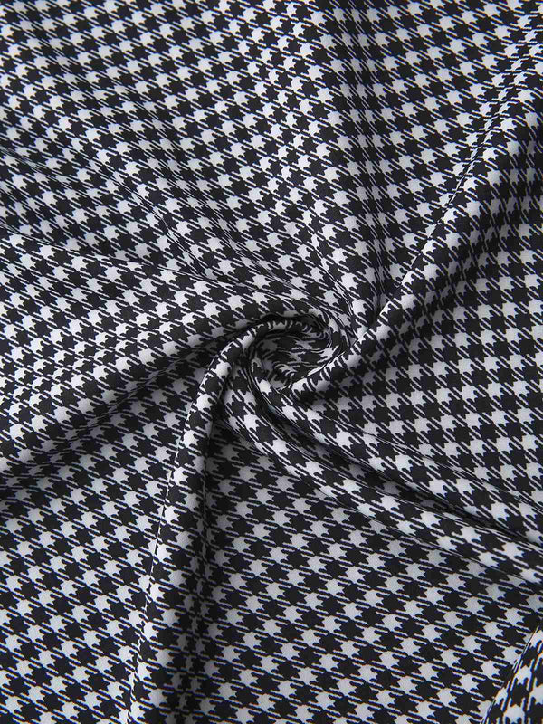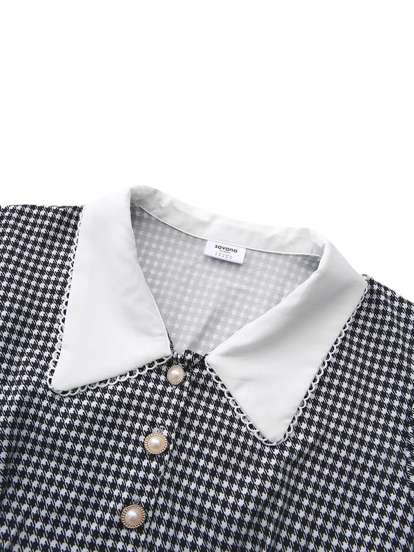 Schwarz 1940er Hahnentritt Puffärmel Perlen Taste Kleid