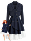 [Vorverkauf] 2PCS Dunkelblau 1950er Kurz Jacke & Spitze Träger Kleid