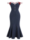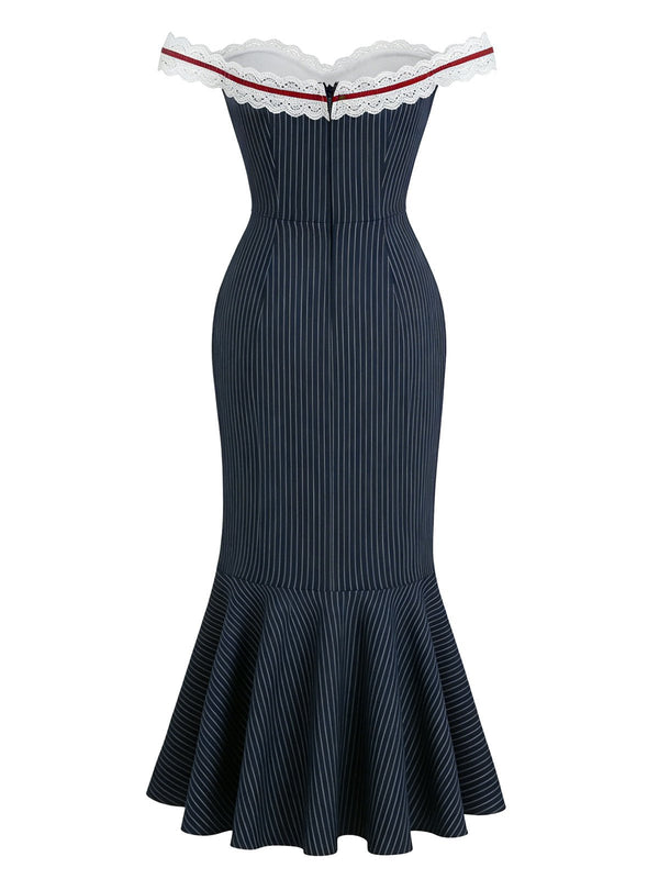 [Vorverkauf] Blau 1930er Streifen Spitze Bogen Fischschwanzkleid