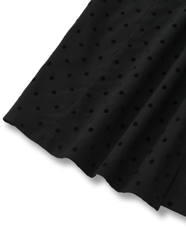 [Vorverkauf] Schwarz 1960er Tupfen Bogen Detail Seite Schlitz Kleid