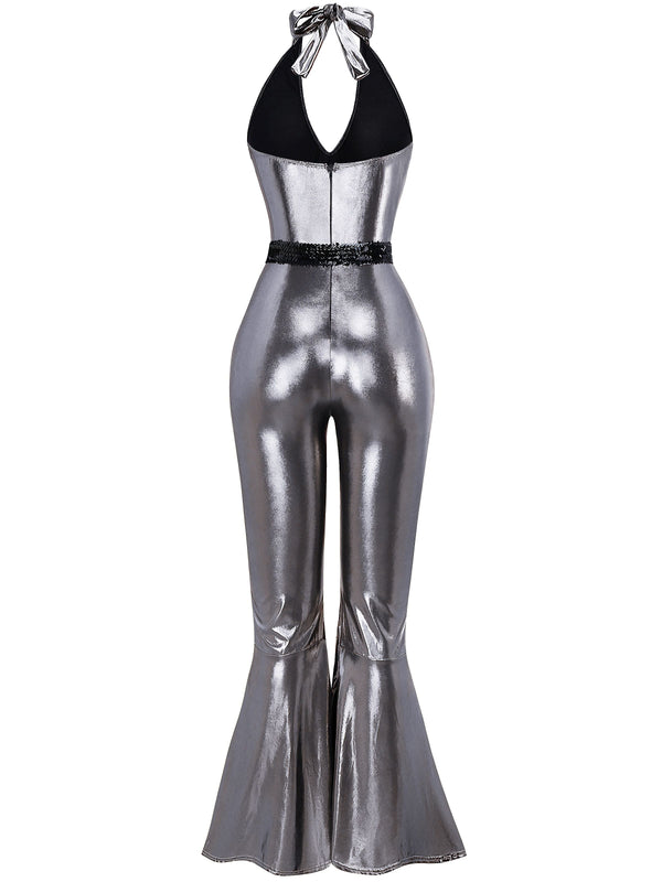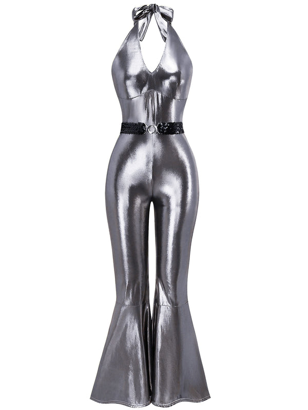 1970er Solide Metallisch Disko Halter Gürtel Jumpsuit