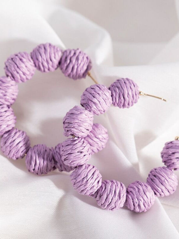 Klobig Geflochten Bast Ball C-Hoop Ohrringe
