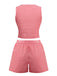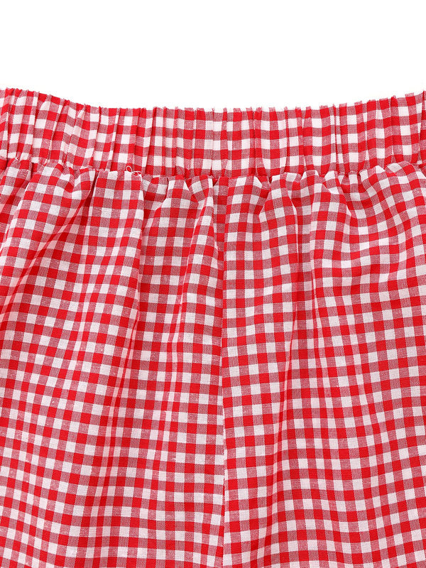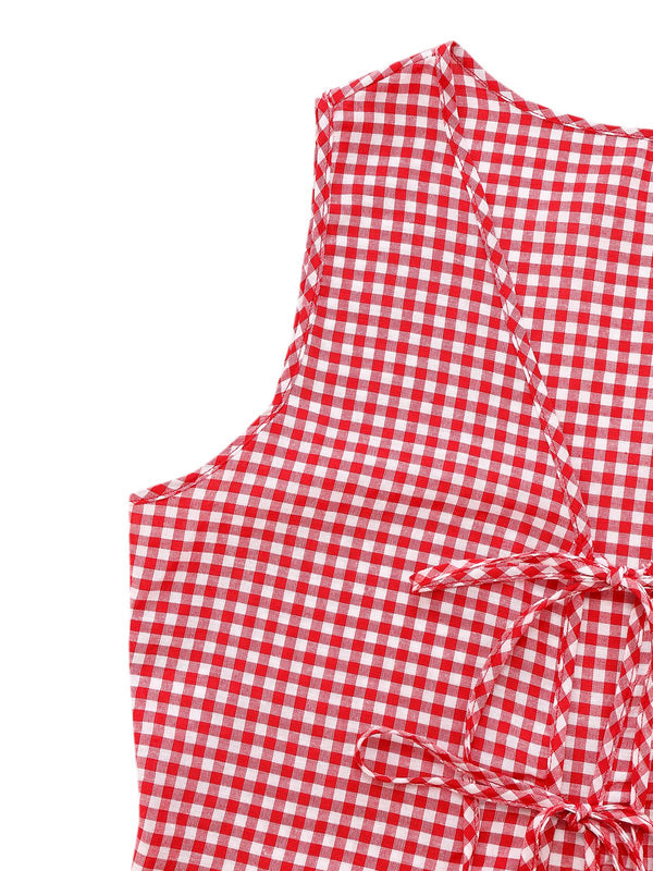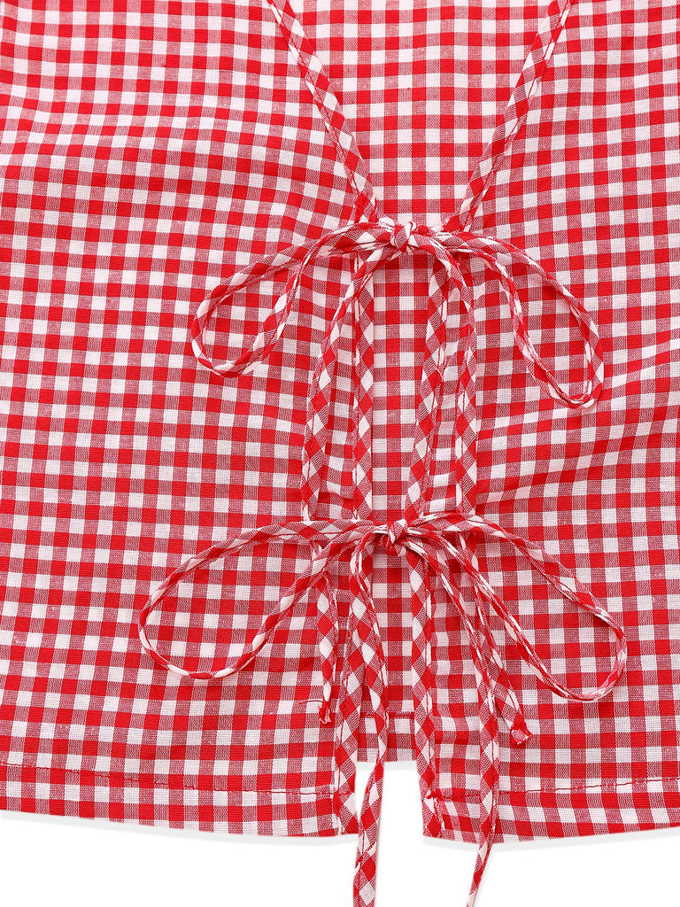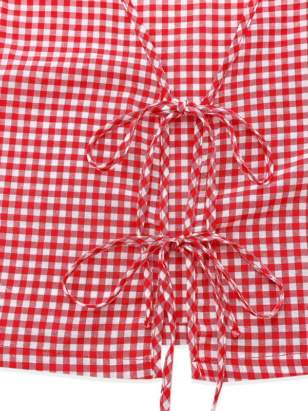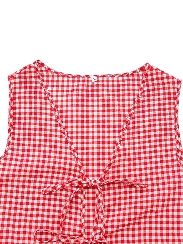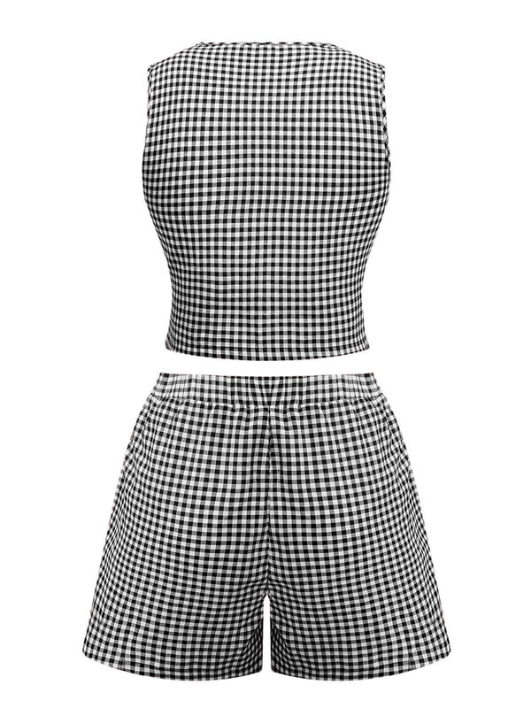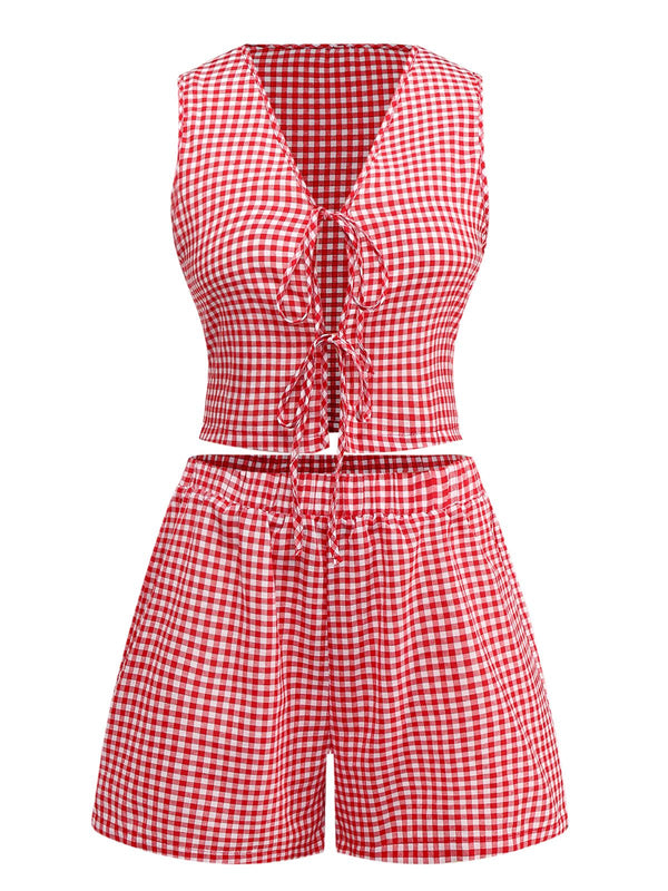 2PCS 1950er Plaid V-Ausschnitt Binden Weste & Shorts