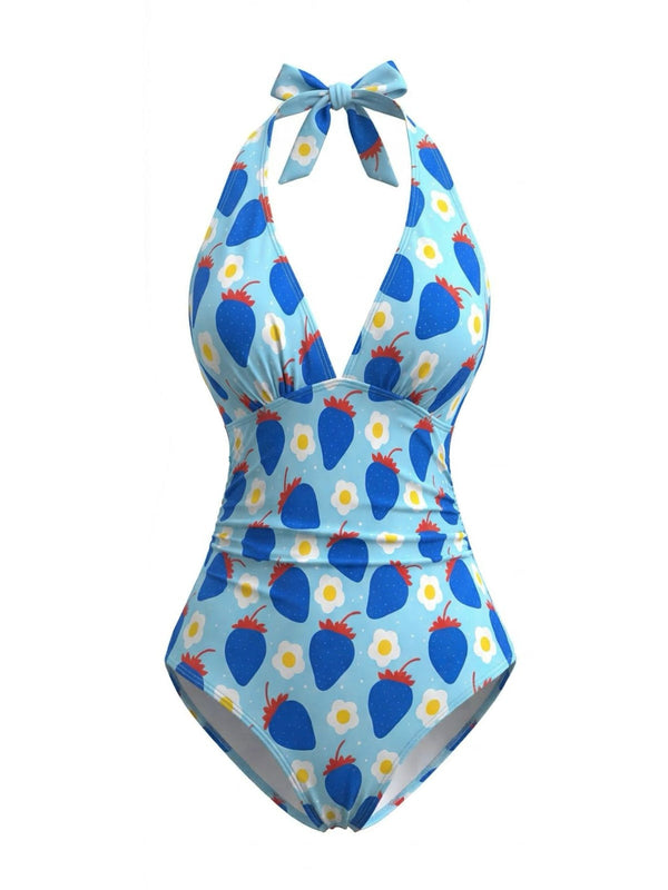 1950er Plissiertes Bauch Weg Erdbeere Einteiliger Badeanzug